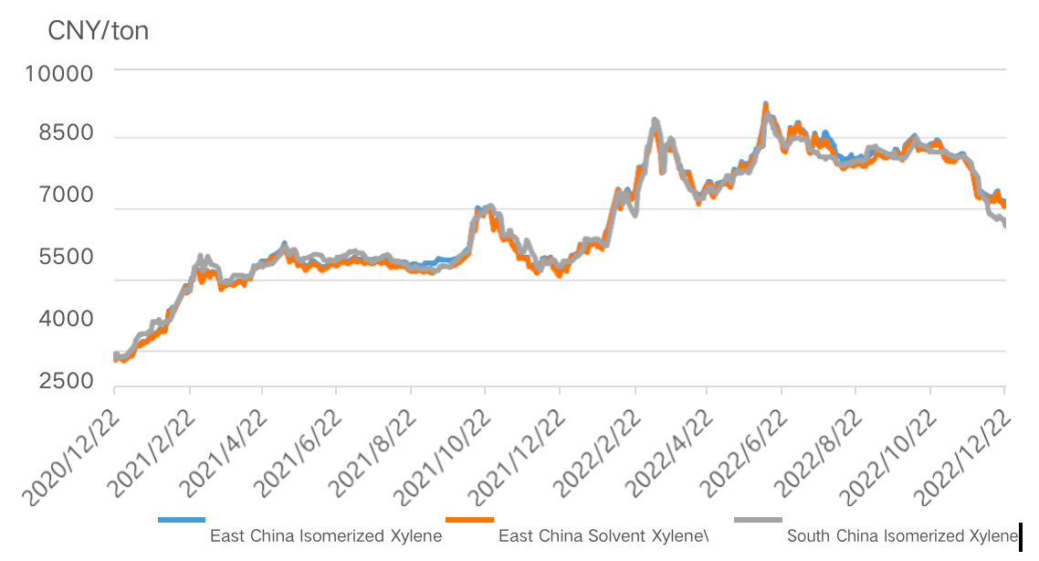 Figure 4. Graphique de tendance des prix de marché intérieur du xylène de 2020 à 2022