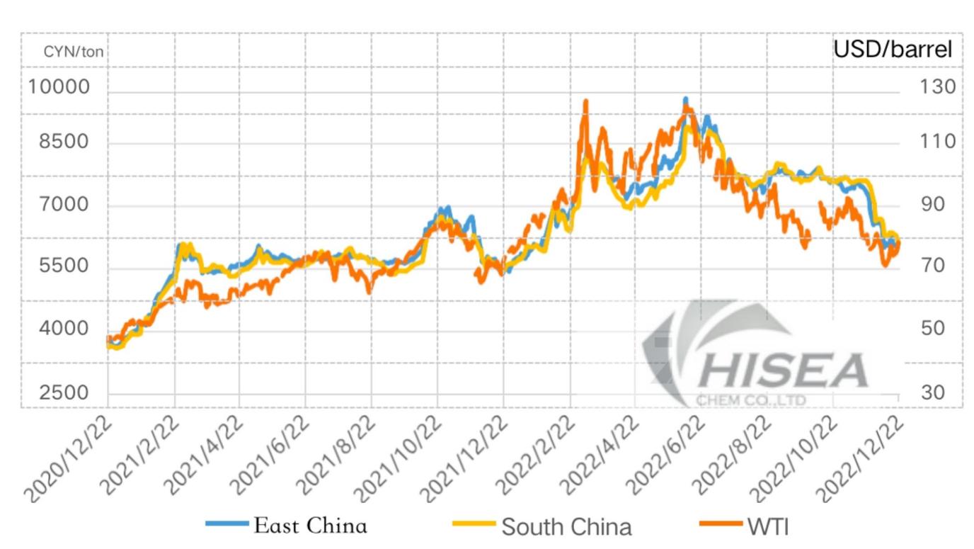la raffinerie a baissé le prix, mais le prix global était toujours plus élevé que celui de la Chine orientale.Il a fermé à 6100-6200 yuan/tonne à midi jeudi, supérieur à celui de jeudi dernier à midi.