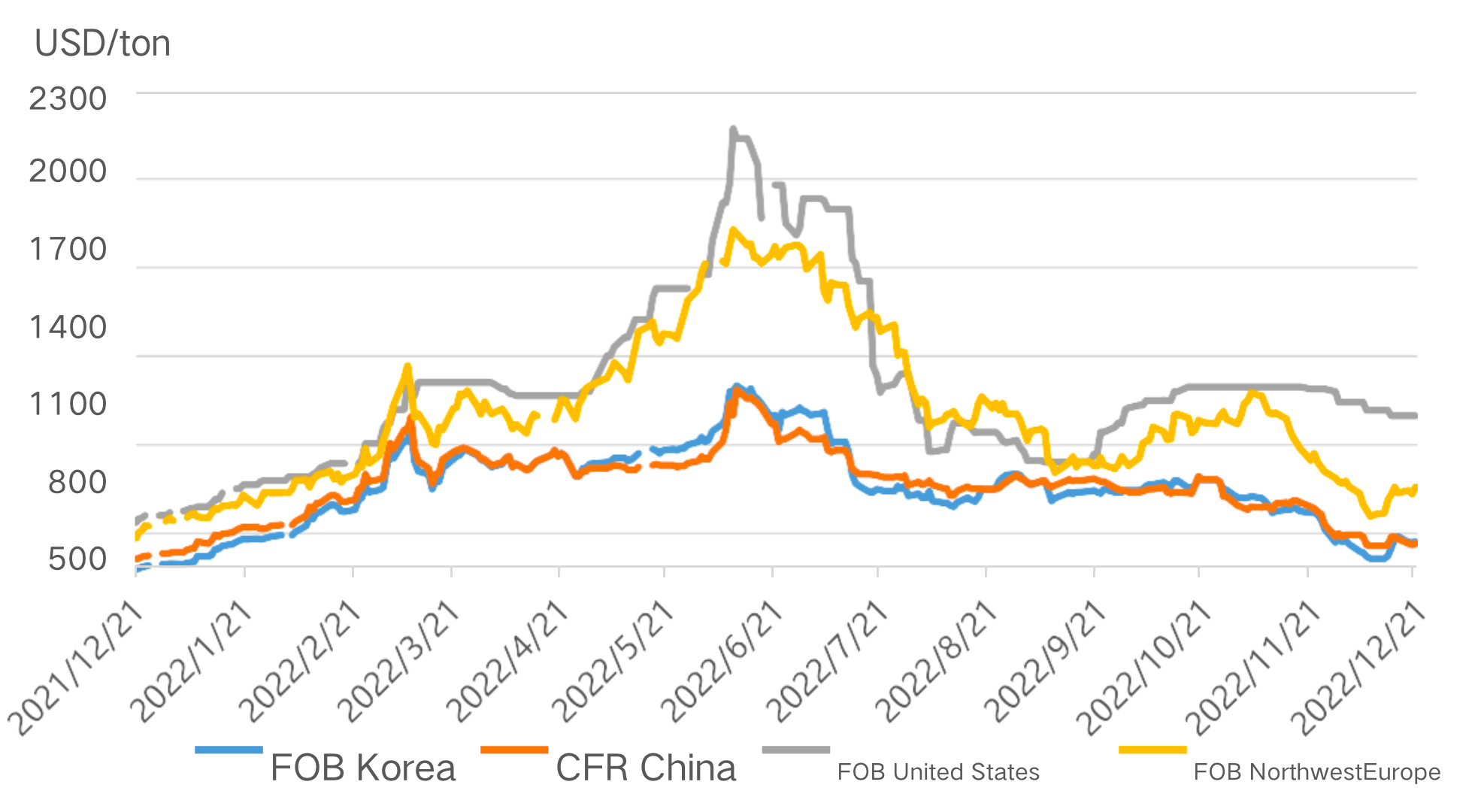 Types de | FOB Corée | CFR Chine | FOB Etats-Unis | FOB L'Europe |